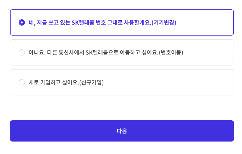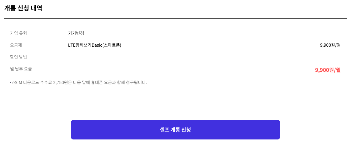 기존 유심을 이심으로 변경할꺼라서 기기변경 선택!