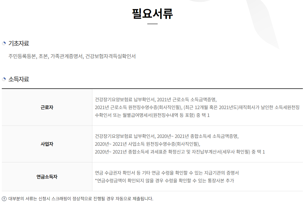 서류는 신청일로부터 1개월 내 발급된 자료만 인정 가능합니다.