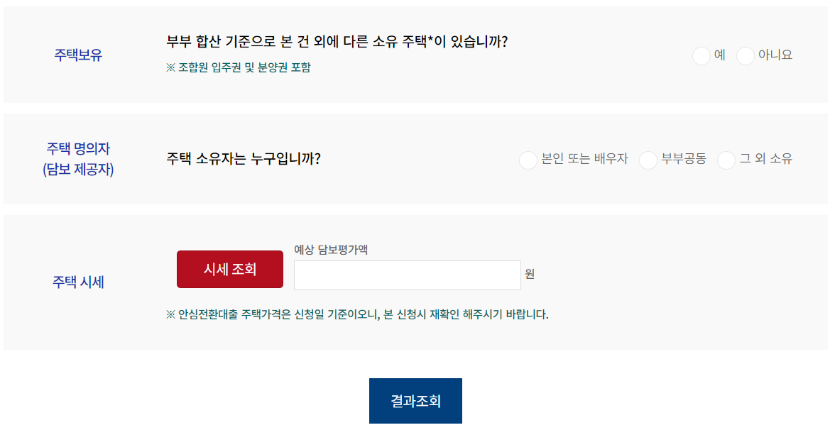 신청인 및 배우자는 신청일 기준으로 본건 외 타 주택을 보유하고 있을 경우 취급 불가합니다.